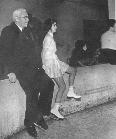 Herbert Clarke (sitting on the barrier again) at Richmond Ice Drome with Mary Hales in 1942