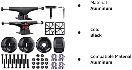 Skateboard Trucks and wheels Set for 7.75-8.25″ decks. This starter set includes 2 skateboard trucks 139mm standard, 4 skateboard wheels 52mm, High precision ABEC-11 Skateboard bearings, Practical T-tool, 2 riser pads 2mm, and standard skateboard hardware. Build a entry-level skateboard with this set.