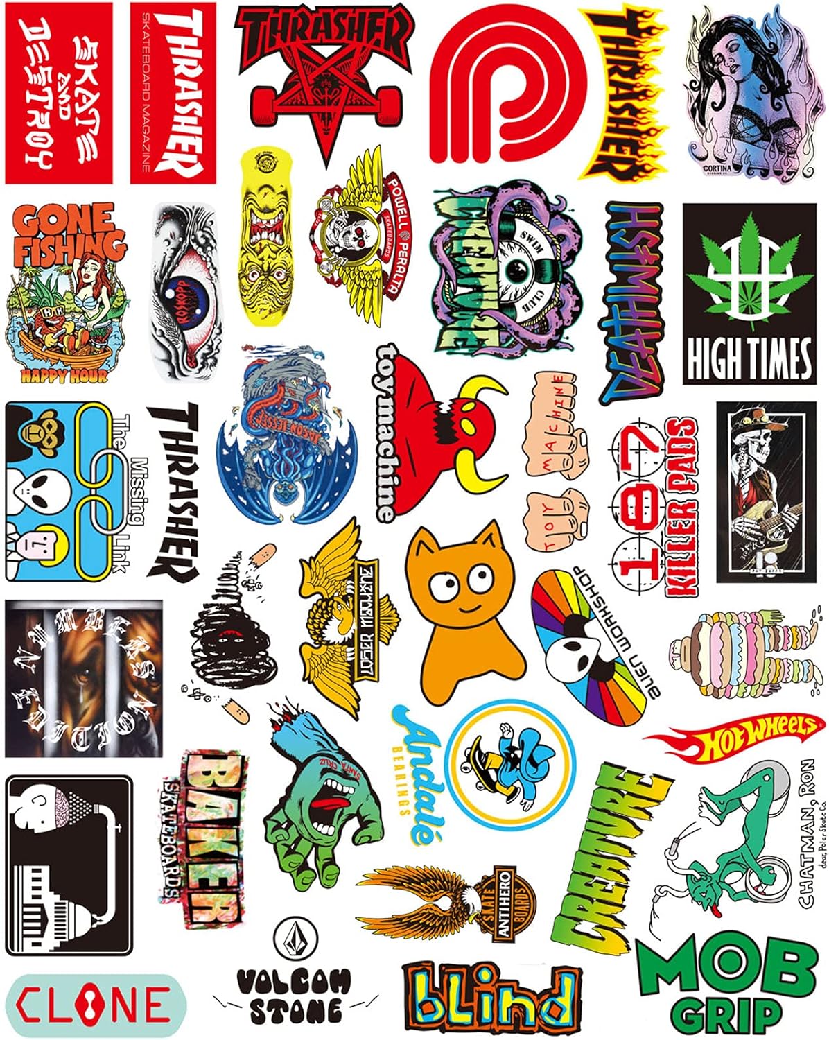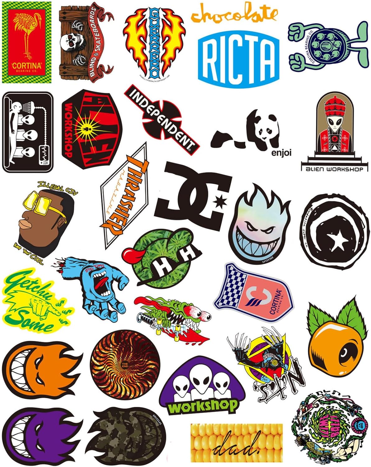 100pcs Skateboard Brand Cool Stickers Pack for Teens, Classic Brand Logo Stickers for Laptop Skate Water Bottles Phone Car Bicycle Luggage Helmet Motorcycle Bumper Waterproof