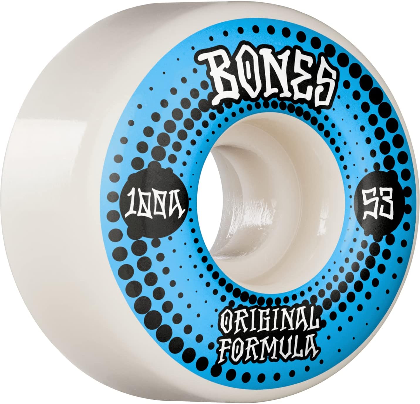 BONES WHEELS 100βs Original Formula is the great grandson of the white, MDI urethane we pioneered in 1977. This family of urethanes has grown to become an industry standard, and because we develop our own formulas in-house, we have been able to keep the BONES Original Formula continuously ahead of all other MDI based wheels in rebound and abrasion.